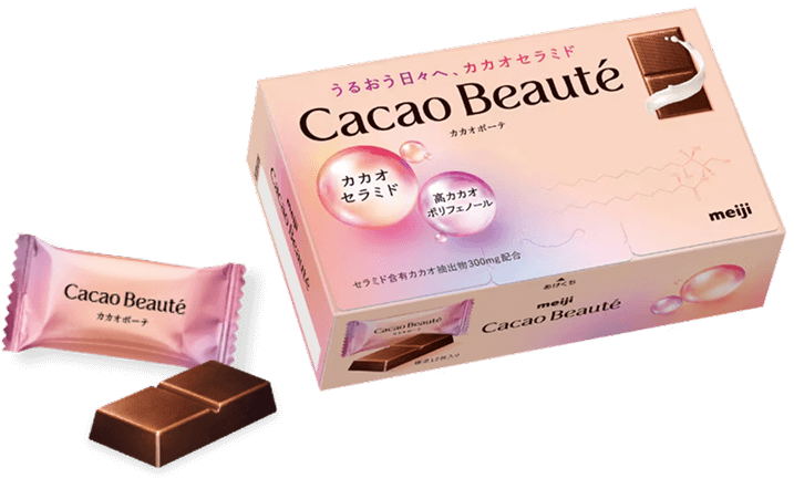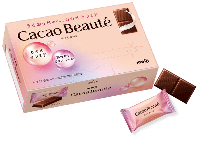 秘めたるカカオパワーを引き出し、ぎゅっと詰め込んだカカオセラミド×高カカオポリフェノールの美容食品です。